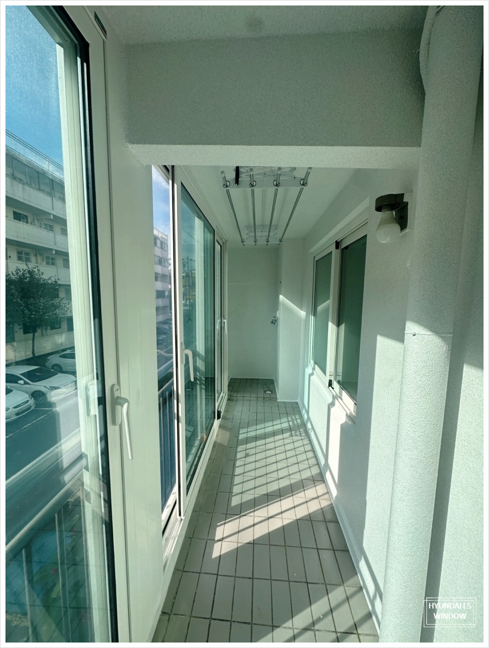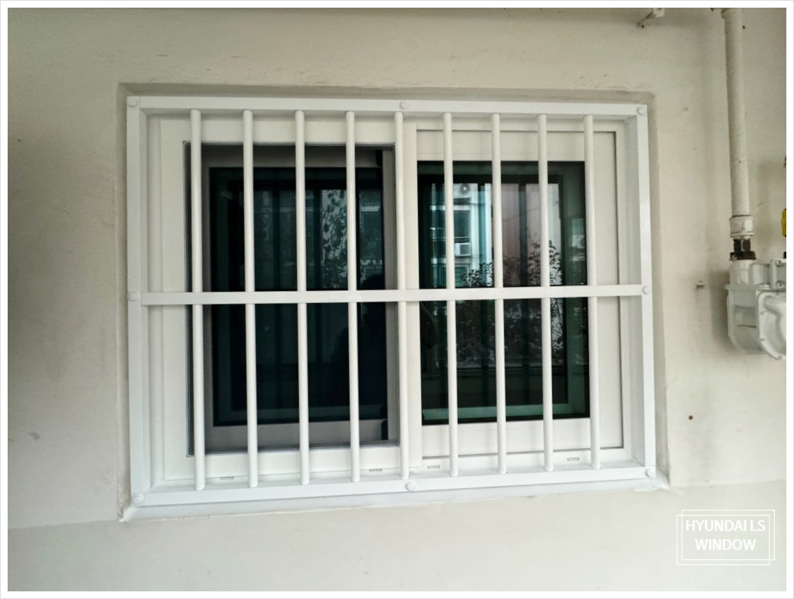 ▶ 또한 고객님의 요청으로 방범창과 빨래건조대 설치를 함께 진행했습니다. 사진에서 보시다시피 방범용 철제 프레임과 내부 유리창을 함께 시공했으며, 이를 통해 미관과 안전성을 모두 충족할 수 있었습니다.