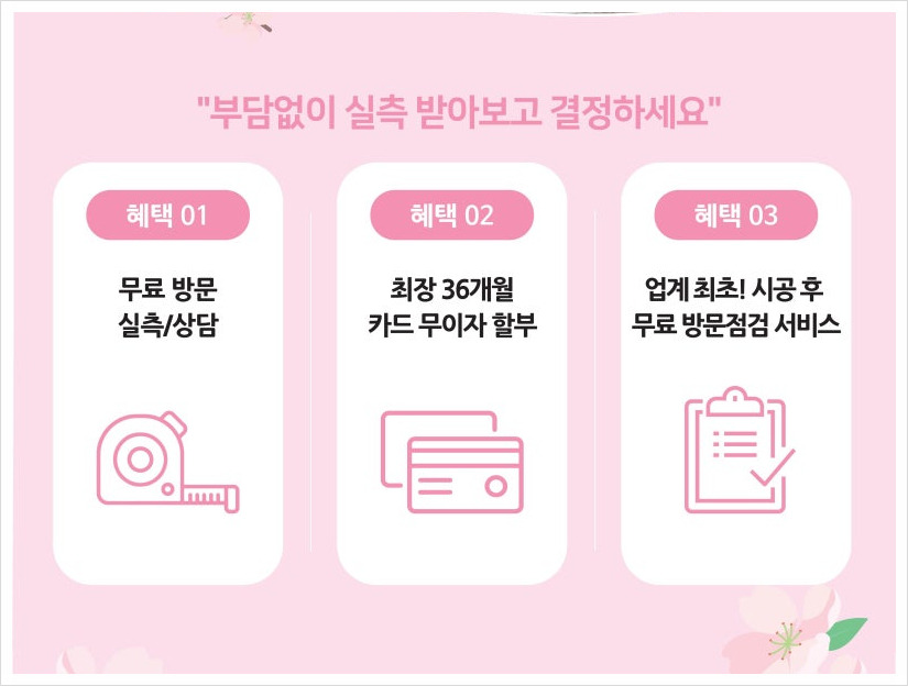- 중문, 바이오세라믹 코트, 단열공사 등 다양한 제품 추가 할인 가능