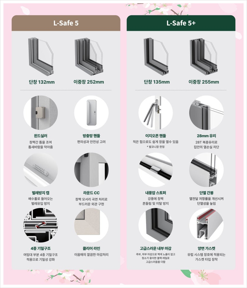 - 스위스페이서 단열간봉: 유리 테두리까지 단열 성능을 강화하여 내구성을 높여줍니다.