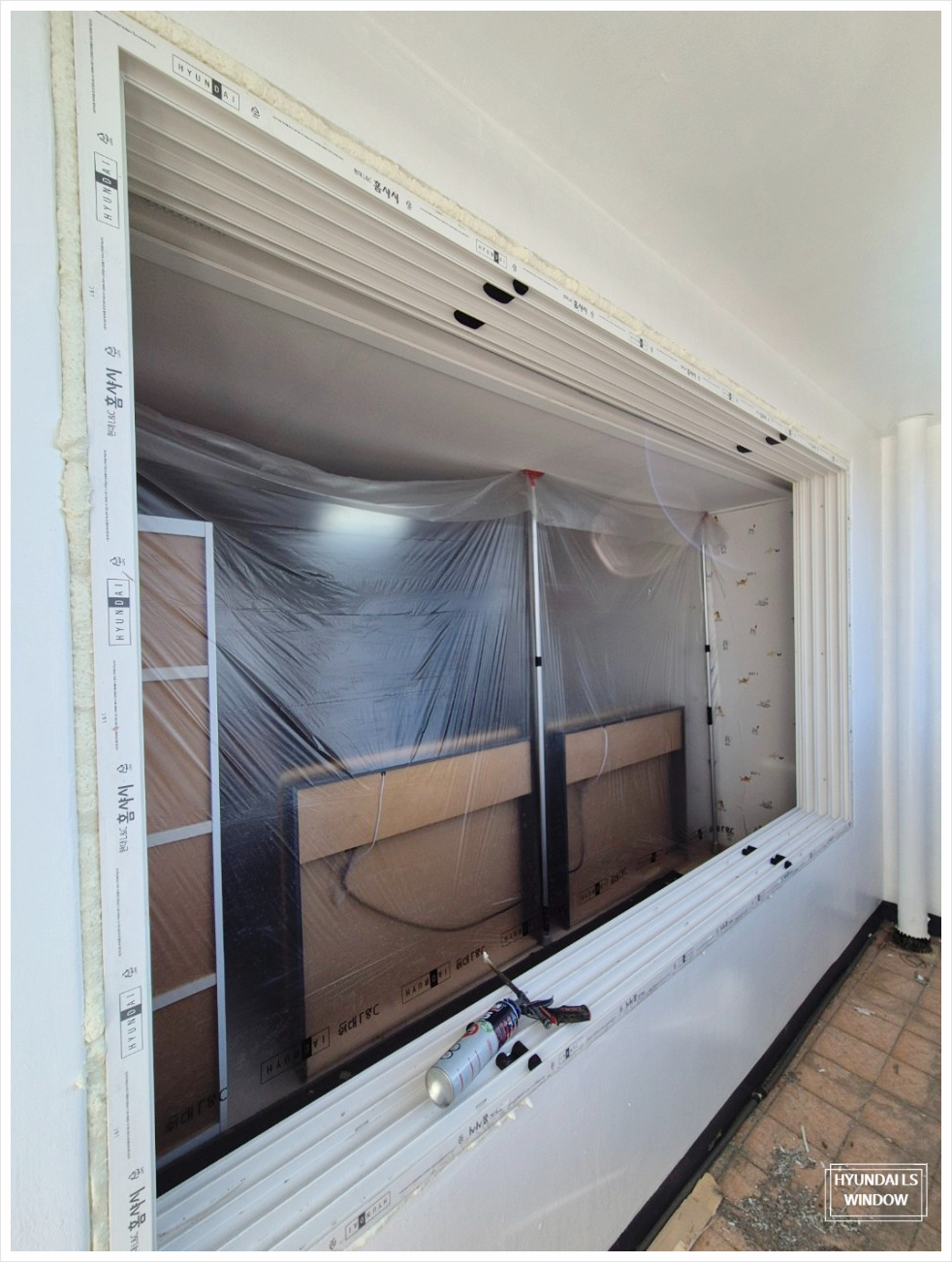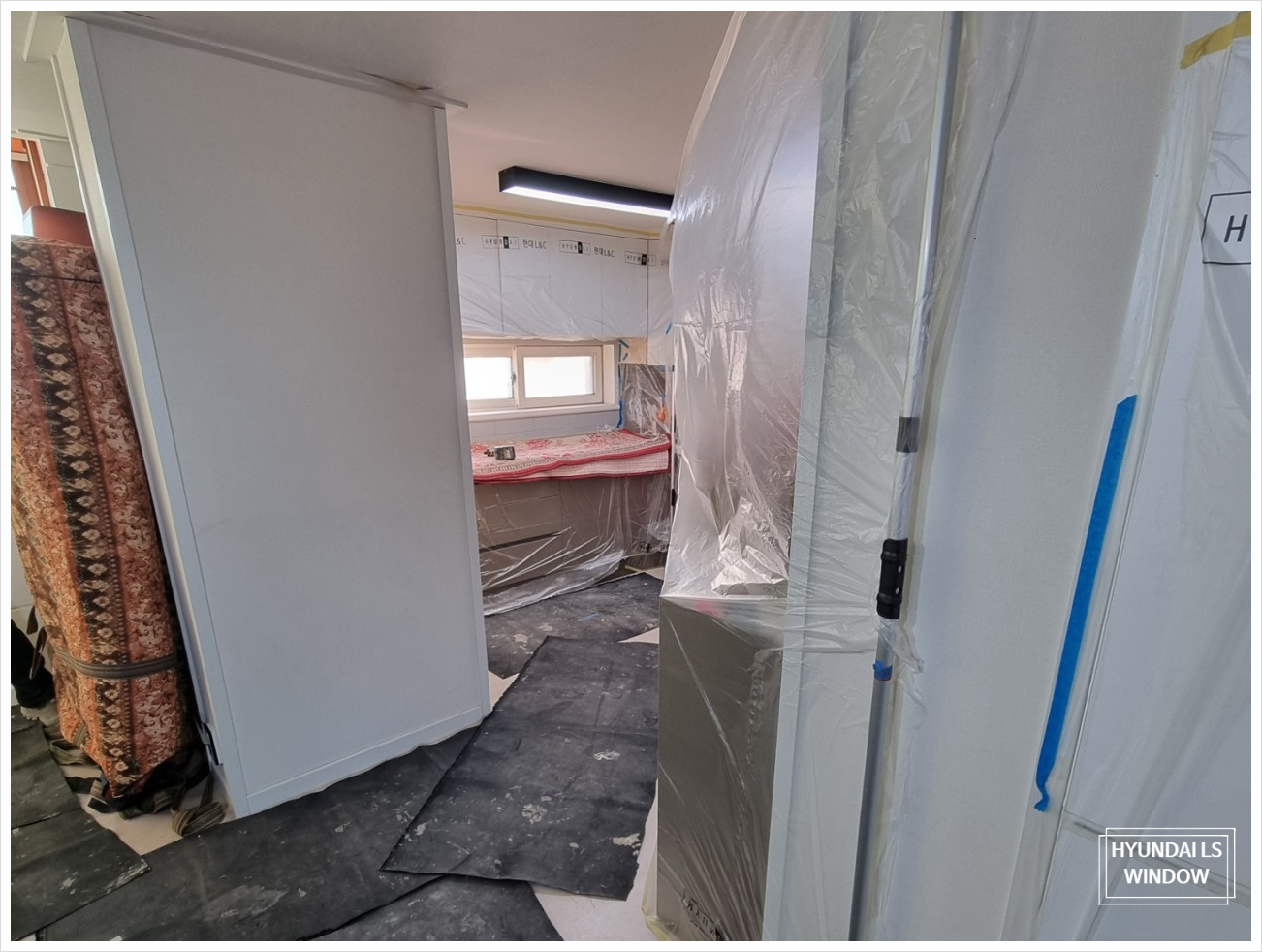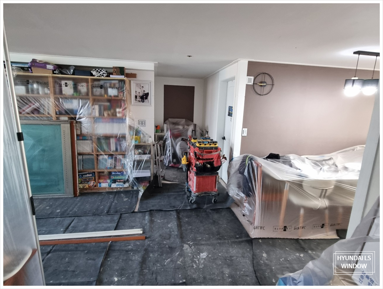 이를 통해 먼지나 오염물이 내부로 유입되지 않도록 사전에 차단하였으며 이제 창호 전체 교체를 위한 모든 준비가 완료된 상태입니다.