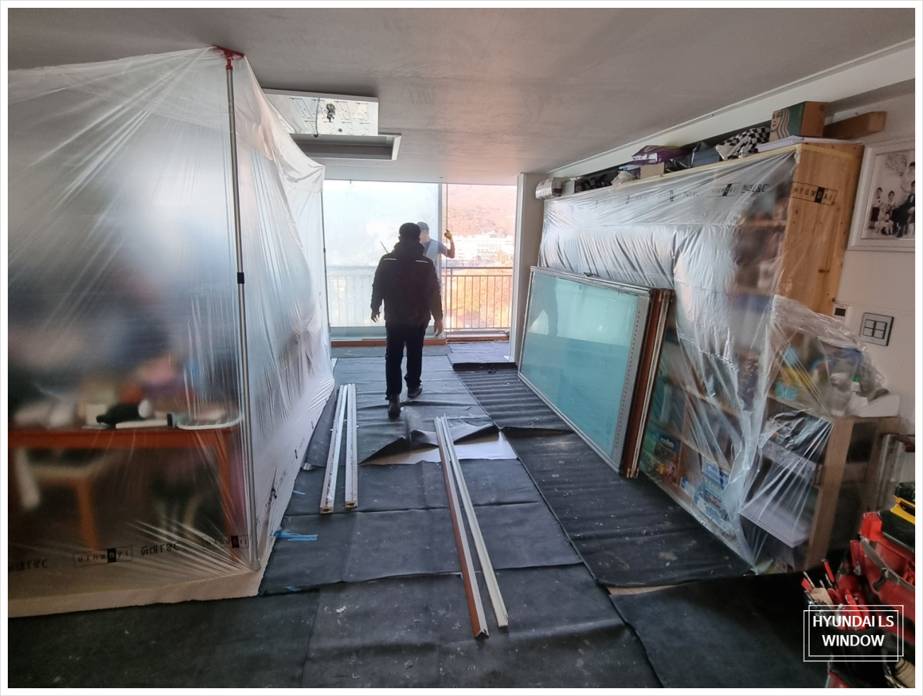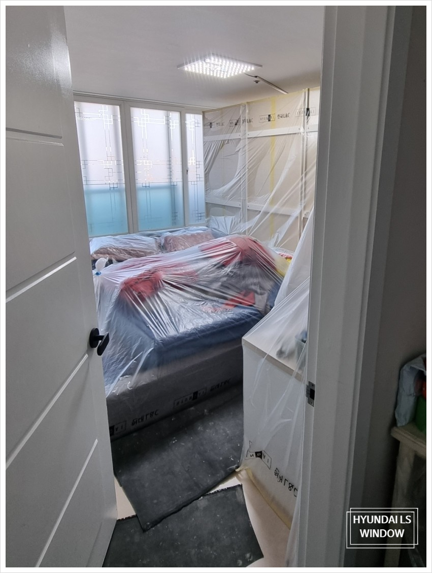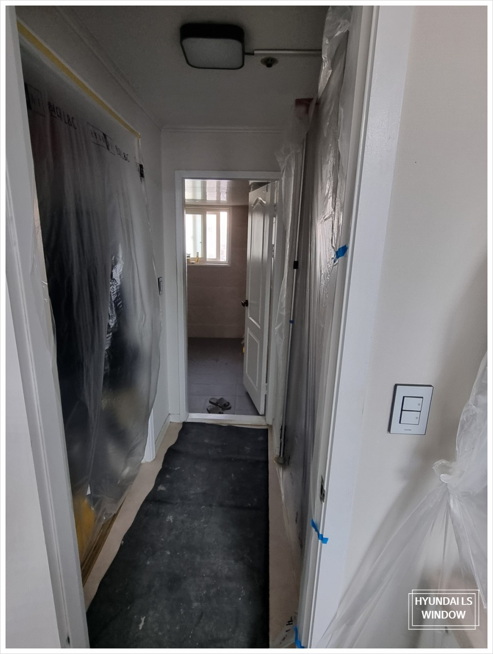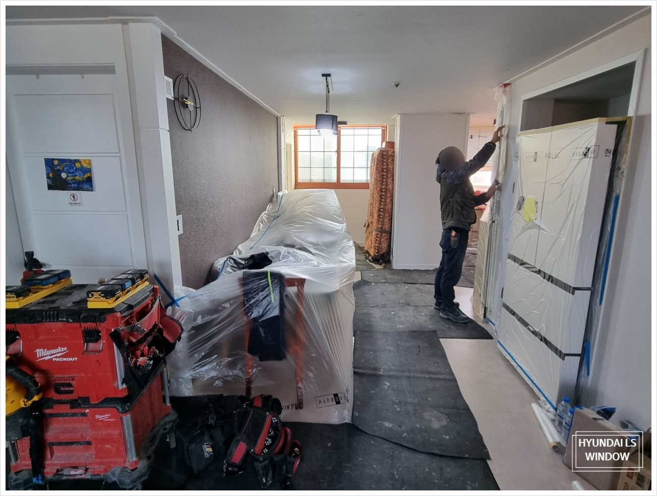 이를 통해 먼지나 오염물이 내부로 유입되지 않도록 사전에 차단하였으며 이제 창호 전체 교체를 위한 모든 준비가 완료된 상태입니다.