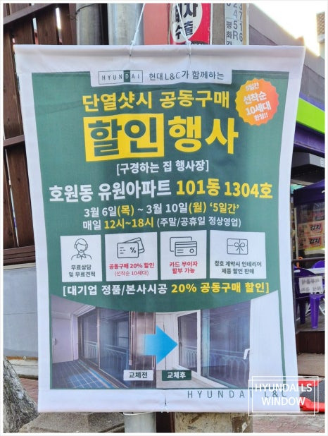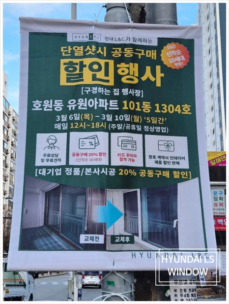 [현대L&C 창호 구경하는집 단지행사중] 호원동 유원아파트 101동 1304호/ 3월6일(목)~3월10일(월) 현대엘앤씨 샤시 샷시 공사 노후창문교체 시공업체추천 정품완성창 홈샤시